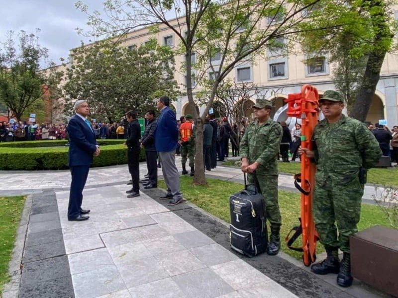 Ciudad de México.- En punto de las 12:19 horas sonó la alerta sísmica como parte de macrosimulacro y el presidente Andrés Manuel López Obrador salió a una zona segura en Palacio Nacional.