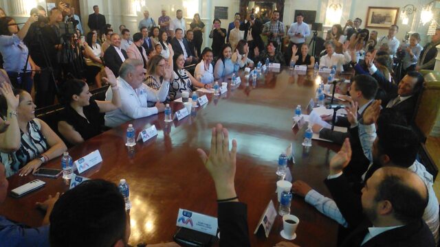 Con una cita a las 8:30 de la mañana, periódicos y el cuerpo edilicio se dio cita en el recinto oficial del Ayuntamiento de Chihuahua, donde presentaron formalmente el oficio de solicitud de licencia, misma que fue votada a favor por unanimidad.