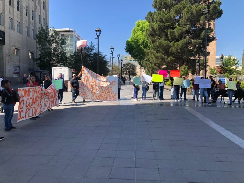 Un grupo de tianguistas que se instalan en el corredor Vistas Cerro Grande se manifestaron a las afueras de la Presidencia Municipal para exigir que no se permita a más vendedores ambulantes, ya que les afecta en sus ventas.