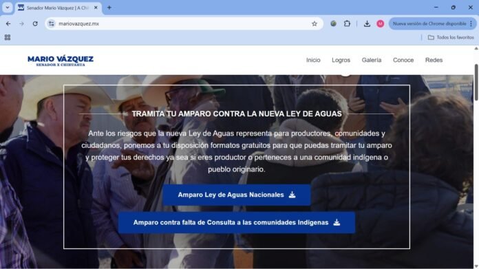 El Senador del PAN por Chihuahua, Mario Vázquez puso a disposición los formatos para que todos los interesados puedan ampararse contra la nueva Ley de Aguas y así defender el patrimonio de su familia.