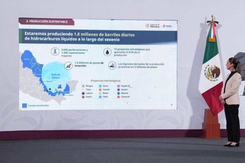 Presenta Sheinbaum plan de Pemex; buscan 1.8 barriles de petróleo al día