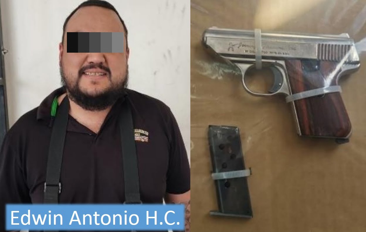 Con los datos y la matrícula de la camioneta, el sistema de video grabación pudo rastrear su trayectoria, hasta dar con él en las calles Aldama y Venustiano Carranza, donde lo aseguraron junto con una pistola tipo escuadra y un cartucho útil que llevaba fajada a la cintura.