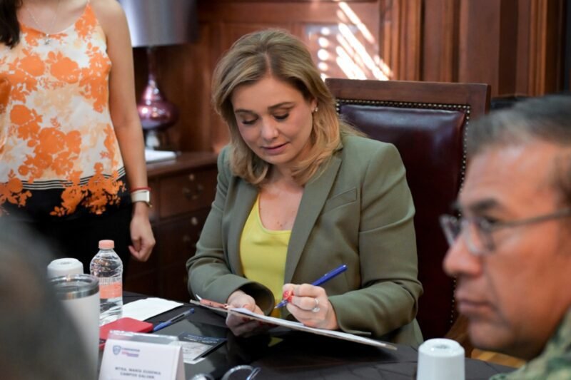 Chihuahua, Chih.- La gobernadora Maru Campos encabezó esta mañana en Palacio de Gobierno, la reunión de la Mesa Estatal de Coordinación para la Construcción de la Paz, en la cual se dio seguimiento a las estrategias implementadas en la entidad en materia de seguridad.