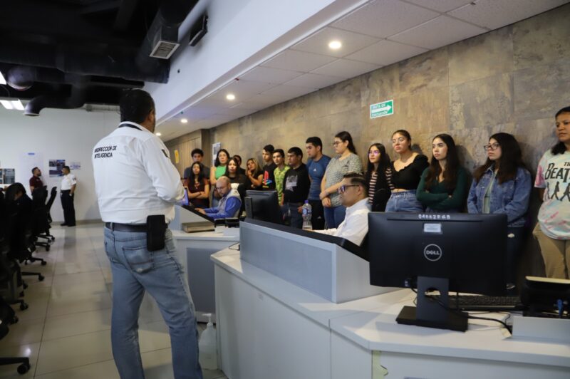 Estudiantes de la Universidad Autónoma de Chihuahua y del Centro Cultural Universitario de Camargo, visitaron las instalaciones de la Plataforma Escudo Chihuahua Capital (PECUU), para conocer de cerca las operaciones de vigilancia y seguridad para las familias de la capital con el apoyo de la tecnología.
