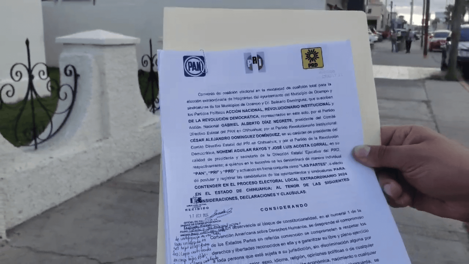 Las dirigencias estatales del PRI, PAN, y PRD ratificaron ante el Instituto Estatal Electoral su convenio de coalición de cara a la elección extraordinaria para la alcaldía y sindicatura del Municipio de Ocampo, además de la sindicatura de Belisario Domínguez; misma que tendrá lugar el 8 de diciembre del presente año, dio a conocer el líder priista Alejandro Domínguez.