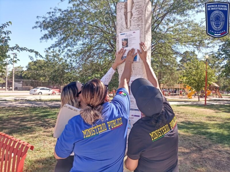Nuevo Casas Grandes, Chih.- Personal de la Fiscalía de Distrito Zona Noroeste, en conjunto con la Comisión Estatal de Búsqueda, realizó un operativo coordinado con la Agencia Estatal de Investigación, para la pega y difusión masiva de pesquisas de personas víctimas de desaparición forzada, ausentes o extraviadas, en el municipio de Nuevo Casas Grandes.