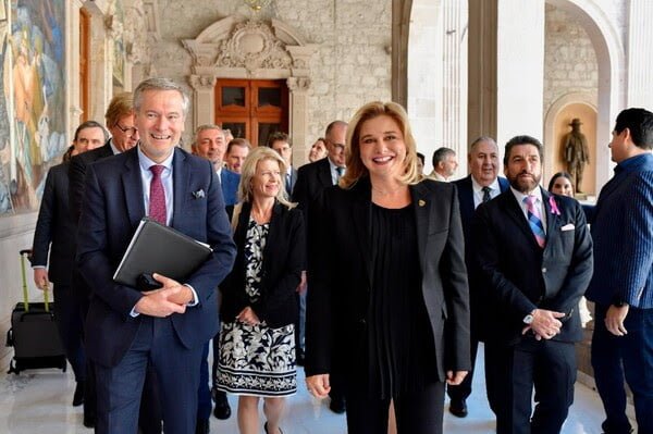 La mandataria estatal, en compañía de Gautier Mignot, embajador de la UE en México; la secretaria de Innovación y Desarrollo Económico, María Angélica Granados Trespalacios y los 12 homólogos de Mignot de distintos países del continente europeo, detallaron que esta visita se lleva a cabo por primera vez en el Estado de Chihuahua para cubrir una agenda económica con el sector privado y el Gobierno del Estado.