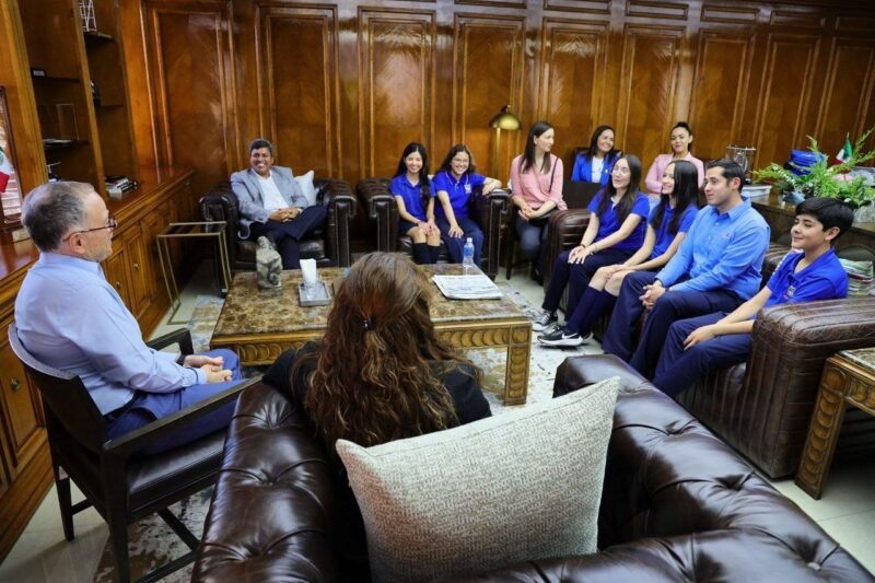 El alcalde de Chihuahua, Jorge Cruz Russek, recibió a un grupo de jóvenes de segundo y tercer grado de secundaria del Colegio Belmont que obtuvieron el primer lugar en la categoría Junior de UMC del Festival de Robótica de América Latina (Robofest LATAM) 2024.