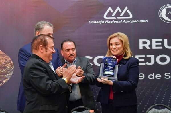 Entre los expositores de la sesión, se contó con las palabras del presidente del Consejo Estatal Agropecuario de Chihuahua, Arturo González Ruíz, quien agradeció a la mandataria por el apoyo que ha demostrado al sector productivo y junto al presidente del Consejo Nacional, Juan Cortina Gallardo, le fue entregado a la jefa del Ejecutivo un reconocimiento por sus acciones en pro del ramo agrícola.