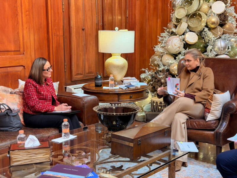 La gobernadora del Estado, Maru Campos, sostuvo una reunión de trabajo con la magistrada presidenta del Tribunal Superior de Justicia (TSJE), Marcela Herrera Sandoval, en Palacio de Gobierno.