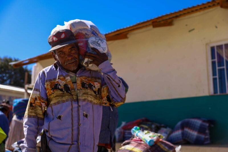 El director general del DIF, Gabriel Eguiarte, el secretario de Comunidades y Pueblos Indígenas, Enrique Rascón Carrillo y el alcalde, Eduardo Aarón Ruelas Fernández, entregaron los apoyos consistentes en: 1,000 cobijas, 500 despensas, 20 cajas de suplemento alimenticio, 500 medias cajas de huevo y 300 bolsitas de dulces.