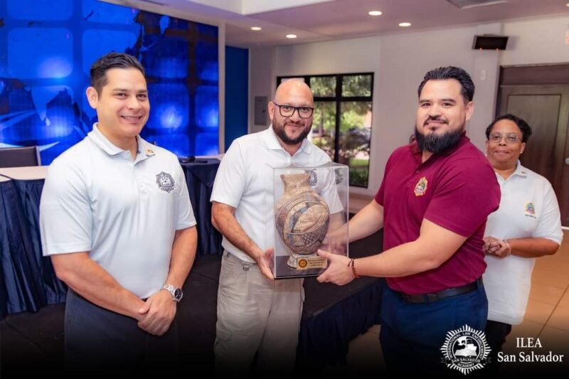 A nombre de la Fiscalía General del Estado y de la Fiscalía de la Mujer, los agentes del Ministerio Público, entregaron un obsequio en agradecimiento a la Embajada de Estados Unidos por la oportunidad que brindada este año 2023 de participar en cursos impartidos en ILEA a fin de contribuir a la seguridad de más mujeres y niñas en el estado de Chihuahua.