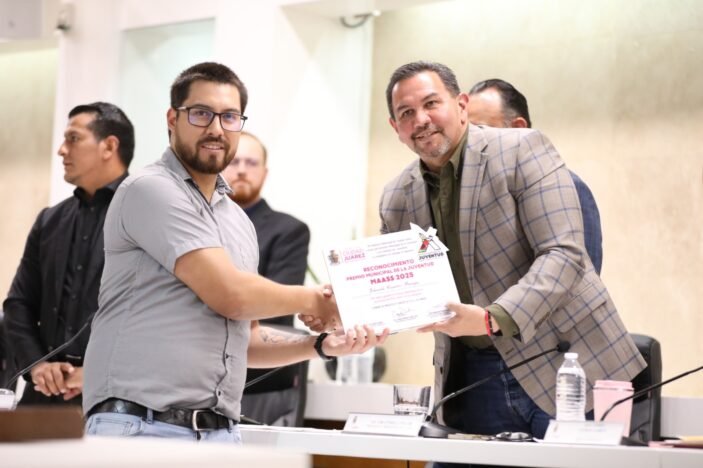 El Presidente Municipal, Cruz Pérez Cuéllar, encabezó la entrega del Premio Municipal de la Juventud MAASS 2025 a los juarenses que destacan en actividades académicas, artísticas, productivas y deportivas, así como por su labor altruista.