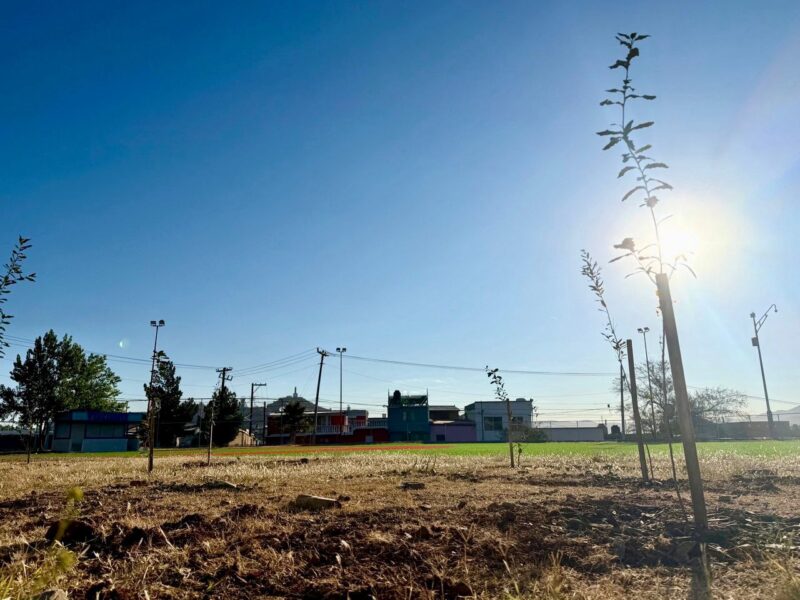 El Gobierno de Parral realizó la plantación de 26 encinos en el Campo de Beisbol del sector Topo Chico, como parte de un programa de reforestación impulsado por la Dirección de Servicios Públicos, que busca crear espacios naturales y mejorar la calidad ambiental en la ciudad.