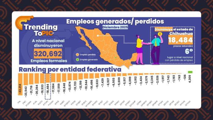El análisis indicó que el comportamiento del empleo en Chihuahua se dio en un contexto de contracción nacional registrada al cierre de diciembre de 2025.
