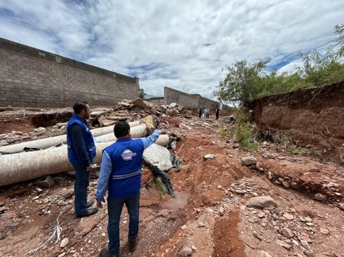 La Junta Municipal de Agua y Saneamiento (JMAS) de Chihuahua inició los trabajos de articulación de la conducción de bajada del tanque Norte 2, que fue dañado por las torrenciales lluvias del lunes 30 de junio.