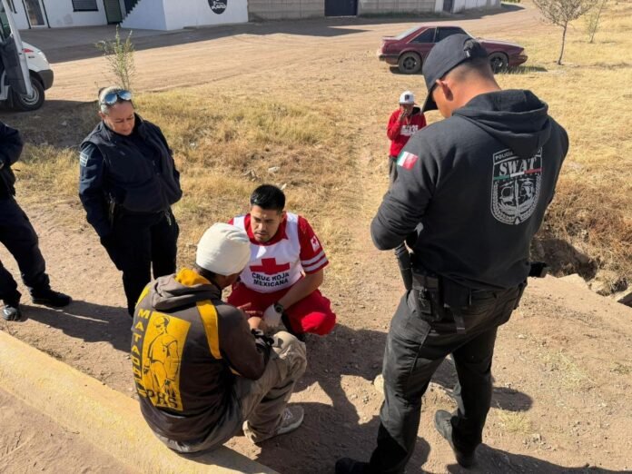 Elementos de la Secretaría de Seguridad Pública del Estado auxiliaron a un hombre gravemente lesionado en la ciudad de Cuauhtémoc, luego de que fuera arrojado desde un puente ubicado en las calles 48 y Beltrán Montes. La intervención ocurrió durante un recorrido de reforzamiento de seguridad, cuando una ciudadana alertó a los agentes sobre una riña entre varios hombres y señaló que uno de ellos había sido lanzado desde la estructura.
