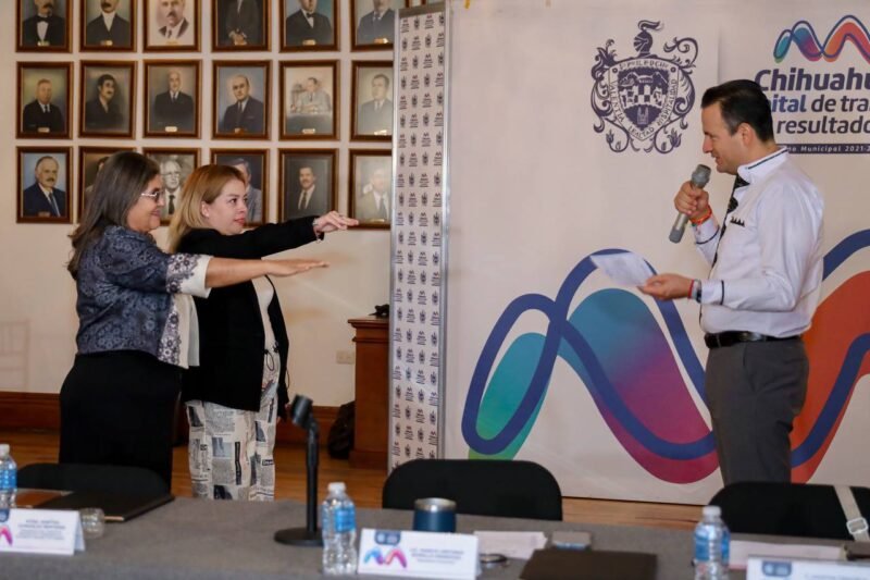 El alcalde de Chihuahua Marco Bonilla Mendoza encabezó la toma de protesta de Martha González Rentería y de Alma Cristina Treviño Olivas, presidenta y vicepresidenta, del Comité de Prevención y Atención a la Violencia Familiar y de Género.