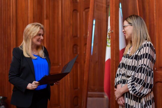 Chihuahua, Chih.- La gobernadora Maru Campos tomó protesta a Raquel Bravo Osuna, como nueva titular del Instituto Chihuahuense de las Mujeres (ICHMujeres), a quien encomendó la tarea de velar por el desarrollo de las mujeres del estado.