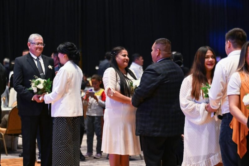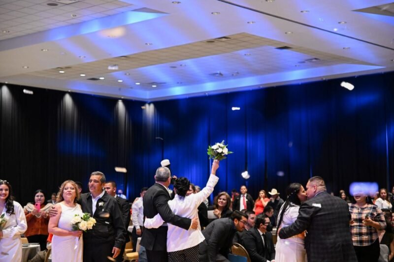 Chihuahua, Chih.- La gobernadora Maru Campos presidió la ceremonia en la que 150 parejas se dieron el Sí, con lo que formalizaron legalmente su unión, en el marco del programa Bodas Colectivas 2023.