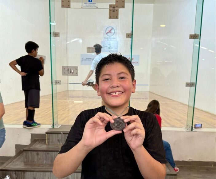 Diego Álvarez, quién representará a México en el próximo Mundial Junior de Racquetbol en República Dominicana, ganó este día la medalla de plata en la Categoría 11 y 12 años en el segundo Torneo Municipal de Racquetbol de Chihuahua.