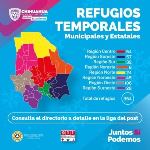 Debido a las bajas temperaturas que se han presentado en todo el estado, especialmente en la zona serrana, mediante los Programas Especiales de Protección Civil para la temporada invernal, las Coordinaciones Municipales reportan a la CEPC tener listos 354 refugios en el Estado.