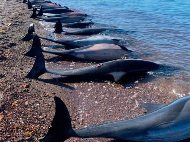 Ciudad de México.- Treinta ejemplares de delfín común de rostro corto (Delphinus delphis) fueron encontrados muertos este miércoles en el Mar de Cortes, específicamente en la playa Califín a 45 minutos al norte de la ciudad capital.