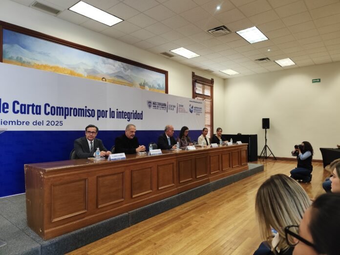 En el marco de la firma de la Carta Compromiso por la Integridad, la representante del secretario de Salud, Leticia Ruz, destacó la colaboración entre servidores públicos y cámaras empresariales para impulsar prácticas éticas en la administración pública. El evento contó con la participación del comisionado de la Coespris, Luis Carlos Tarín, y dirigentes de organismos empresariales.