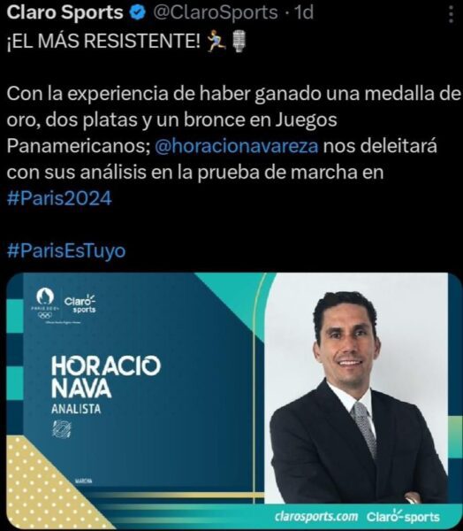 “Emocionado en esta nueva oportunidad!! Muchas gracias a Claro Sports por invitarme a ser parte de su equipo durante las transmisiones de los Juegos Olímpicos París 2024!! Siempre Olímpicos!! Saludos #Paris2024 #ParisEsTuyo #ClaroSports”, escribió el andarín chihuahuense en sus redes sociales.