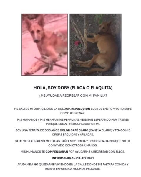 La propietaria de dos perritas extraviadas en la colonia Revolución, continúa en la búsqueda y pidiendo a la población apoyo para encontrarlas