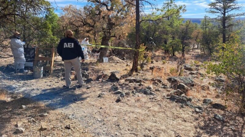 El Equipo Interdisciplinario de la Fiscalía General del Estado continúa los trabajos de procesamiento forense de un total de 56 cuerpos que fueron localizados en el predio conocido como “El Willy”, ubicado en las inmediaciones del Ejido Ignacio Zaragoza, municipio de Casas Grandes.