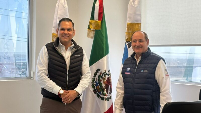 El secretario de Seguridad Pública Estatal, Gilberto Loya Chávez, sostuvo una reunión con el director del Fideicomiso de Puentes Fronterizos, Rogelio Fernández Irigoyen, la mañana de este martes, con el objetivo de mantener una estrecha comunicación sobre la dinámica de la frontera y fortalecer la colaboración entre ambas instituciones en beneficio de la ciudadanía.