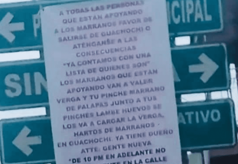 Fue el pasado martes cuando las consignas amenzantes aparecieron en el municipio serrano, lo que activó un operativo de identificación por parte de la Secretaría de Seguridad Pública del Estado (SSPE), que se saldó con la detención de cinco personas la mañana de este 04 de julio, entre ellos un ex elemento de la Policía del Estado.