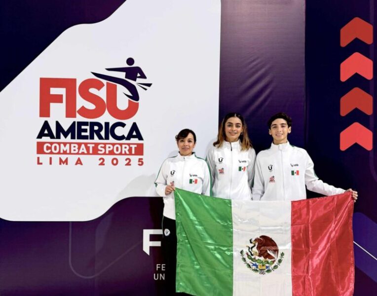 Joel y Sofía están acompañados de su coach Joely Ramírez quién además acude como entrenadora de la selección nacional Universitaria para esta justa de Combat Sport convocada por la Federación Internacional del Deporte Universitario FISU América.