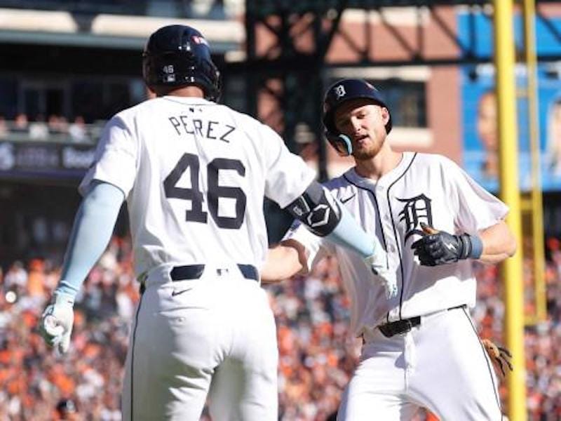 Frente al abridor Alex Cobb, quien no había lanzado en el último mes, los locales abrieron el marcador en la primera entrada con una carrera de Parker Meadows tras sencillo de Riley Greene.