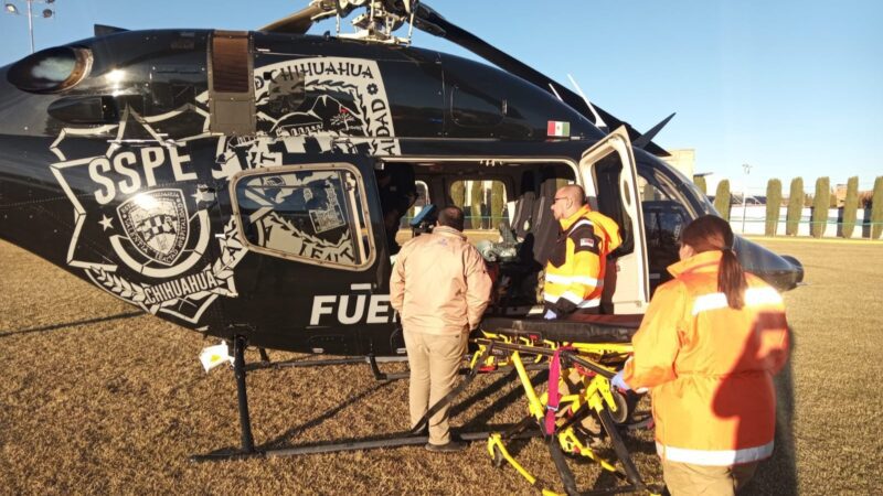 Personal de la Coordinación Estatal de Protección Civil, la Secretaría de Seguridad Pública y la Secretaría de Salud, trasladó vía aérea a una paciente con una emergencia gineco-obstétrica desde la comunidad de Huajumar, municipio de Ocampo, a ciudad Cuauhtémoc.