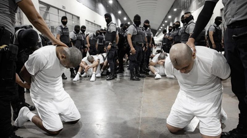 Las imágenes difundidas por la presidencia salvadoreña repiten el formato de otras ocasiones. Los prisioneros, esposados y forzados a bajar la cabeza, son llevados con gran aparato y a punta de pistola del aeropuerto a la cárcel. Allí se les coloca un uniforme de ropa interior blanca y se les rapa el pelo ante las cámaras de televisión. El objetivo es presumir del poder represor del Estado y humillar a los detenidos.
