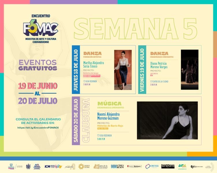 Durante esta semana, del 18 al 20 de julio, se llevarán a cabo diversas presentaciones que incluyen danza y música, actividades que ofrecen una excelente oportunidad para disfrutar del talento local, además de apoyarlos.
