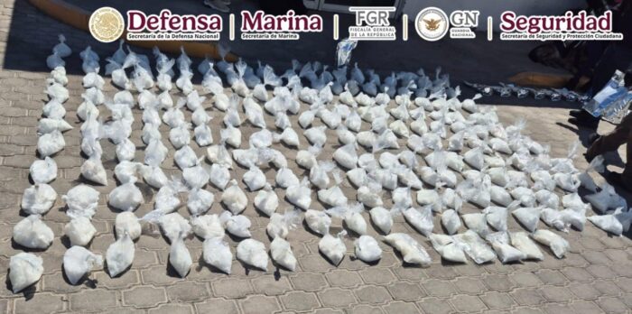 Resultado de trabajos de reforzamiento de seguridad en carreteras del país, en un dispositivo de inspección y vigilancia, en Baja California, elementos de la Secretaría de Seguridad y Protección Ciudadana (SSPC), Secretaría de la Defensa Nacional (Defensa), Secretaría de Marina (Semar), Guardia Nacional (GN) y Fiscalía General de la República (FGR) detuvieron a un hombre que transportaba 203 kilos de metanfetamina.