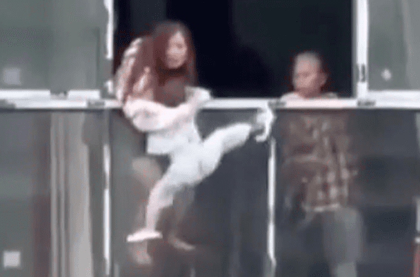 El momento en el que He arroja al pequeño por la ventana fue viralizado en redes sociales chinas.