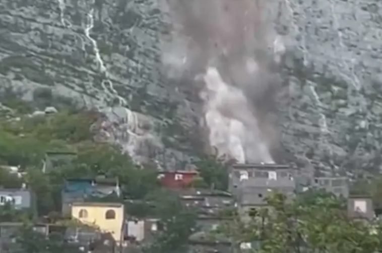 En el video difundido en redes sociales se aprecia el momento en el que parte del Cerro Topo Chico se desprende y se va directo contra varias casas.
