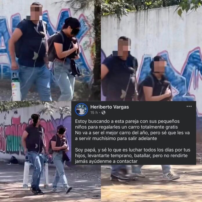 El impulsor de la búsqueda es Heriberto Vargas, un padre de familia que se conmovió al ver la escena y decidió ofrecerles un apoyo concreto: regalarles un carro totalmente gratis. En su publicación, Vargas escribió: “Estoy buscando a esta pareja con sus pequeños niños para regalarles un carro totalmente gratis. No va a ser el mejor carro del año, pero sé que les va a servir muchísimo para salir adelante. Soy papá, y sé lo que es luchar todos los días por tus hijos, levantarte temprano, batallar, pero no rendirte jamás. Ayúdenme a contactarlos”.