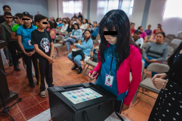 La presidenta municipal de Aquiles Serdán, Teresa Erives y autoridades electorales encabezaron el viernes una jornada de elecciones en la que niños y niñas de distintos planteles educativos eligieron a sus representantes.