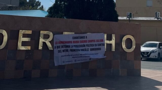 Al cabo de unos minutos, varios miembros del movimiento estudiantil colocaron en la entrada de Derecho una cartulina en donde se leía: «Exhortamos a la gobernadora María Eugenia Campos Galván a que detenga la persecución política en contra del Mtro. Francisco González Arredondo», mensaje acompañado de los hashtag #JusticiaParaFrancisco, #ALosAlumnosNoNosCallan y #QuierenADuarteLibre.
